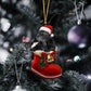 Black Pitbull In Santa Boot Christmas Hanging Ornament SB051