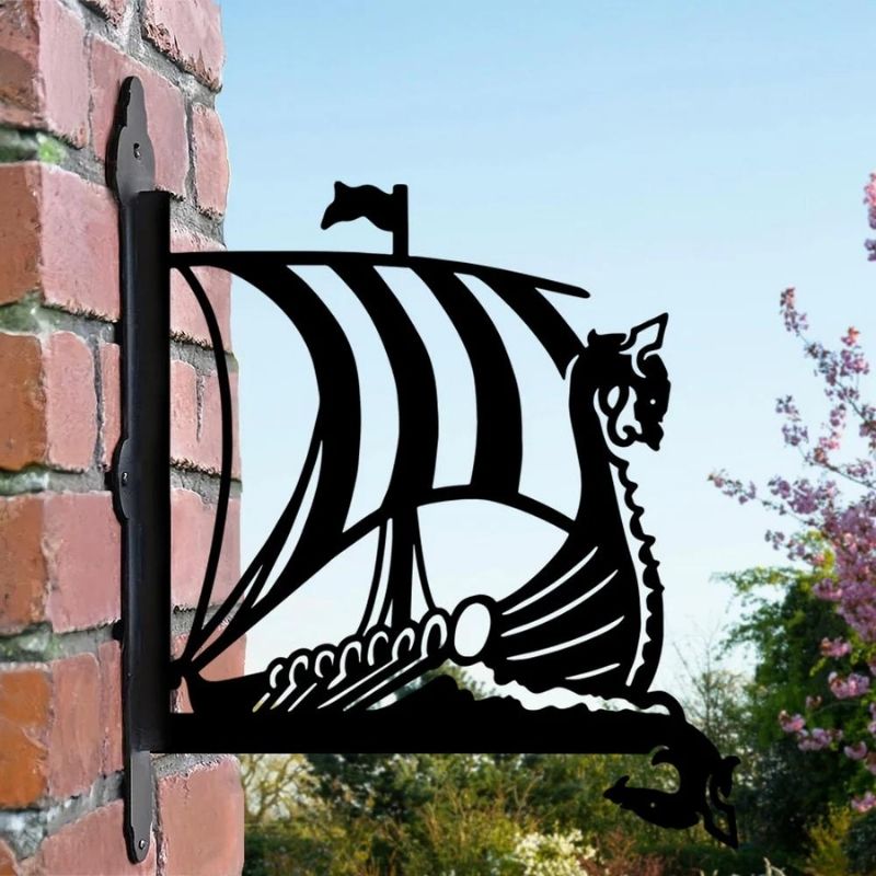 Black Viking Ship Metal Hanging Bracket Plant Stand PS114