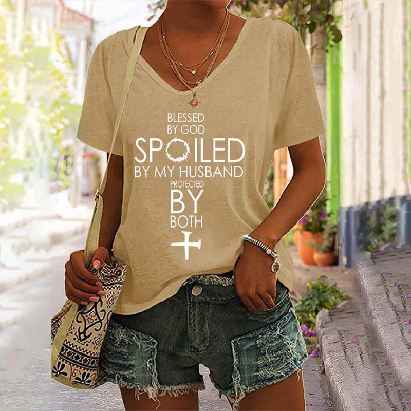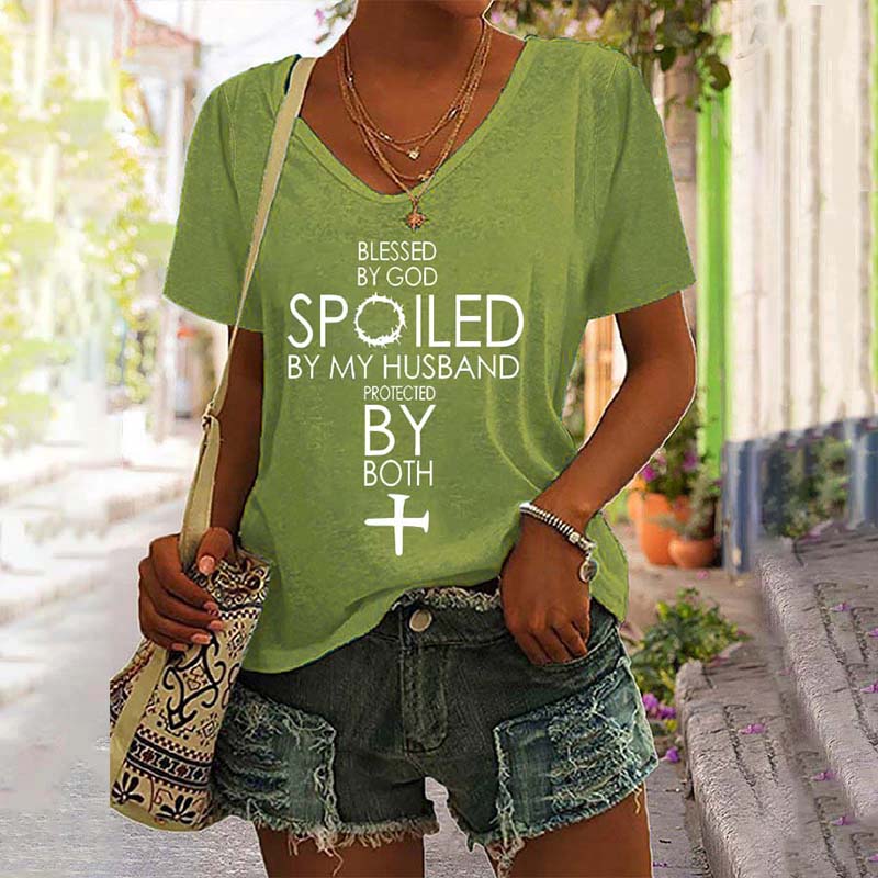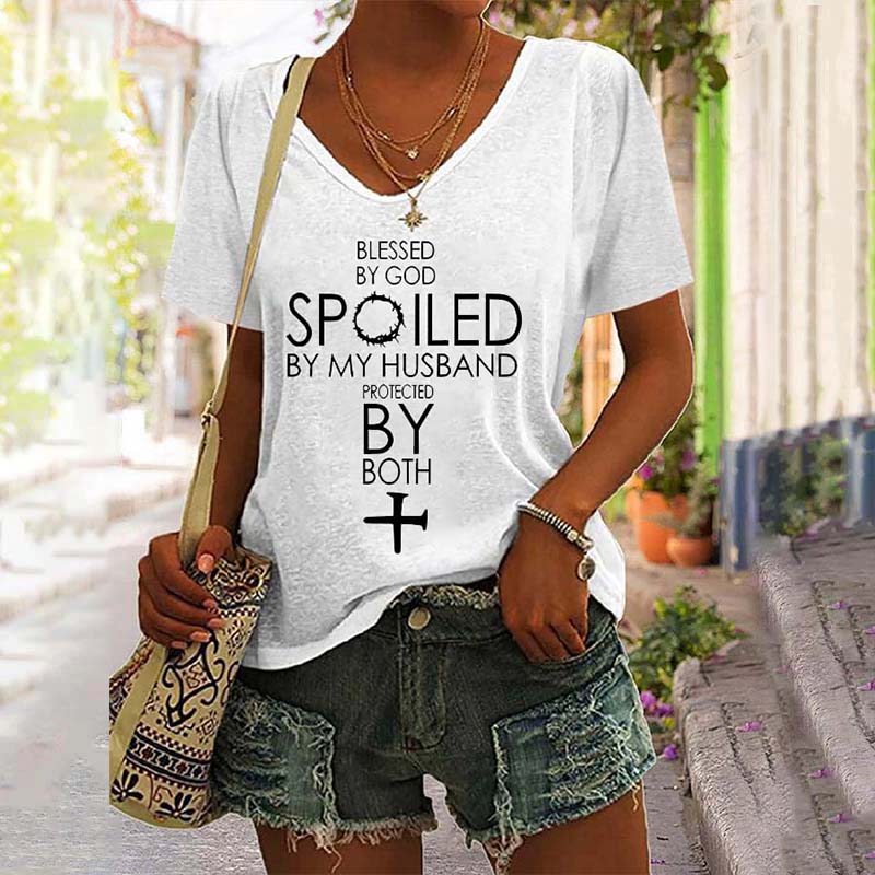Blessed By God Spoiled By My Husband Protected By Both V-Neck Tee
