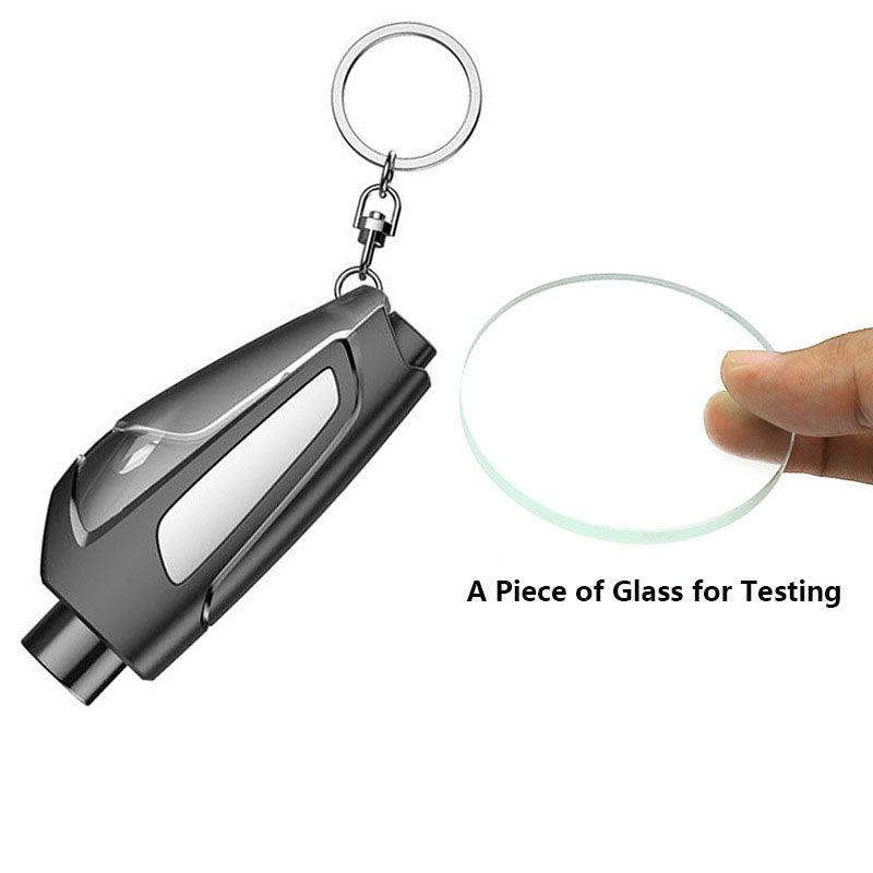 Break the Window: In case of emergency, you can use your car kit to break the window, remove the cap, press the escape device to the end, heard a bang, broken glass, emergency escape.(When testing the broken window function, please use it on glass or wood. Please do not use the broken window function on a soft plane.)