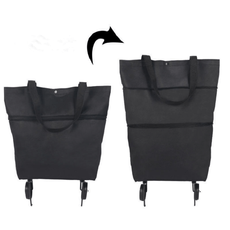 Trolley shopping bag is made of thick premium 600D Oxford Cloth and high quality- wide design hand strap with foldable wheels.