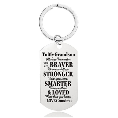 Grandma To Grandson - Always Remember You Are Braver Than You Believe - Inspirational Keychain - A918