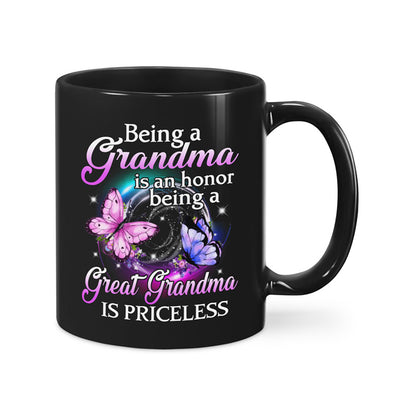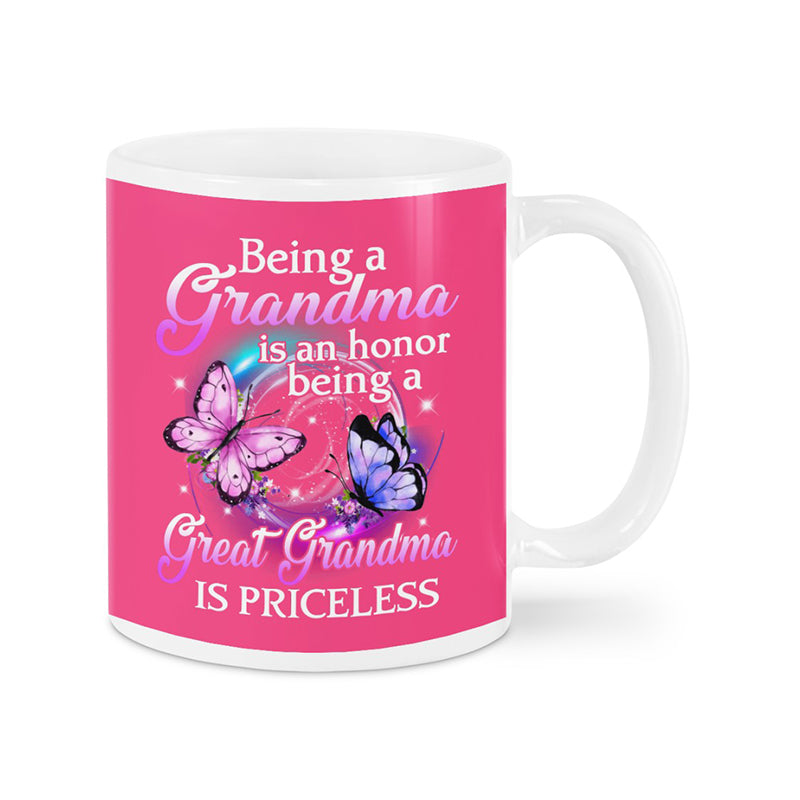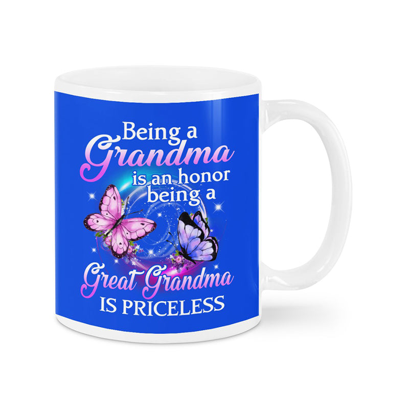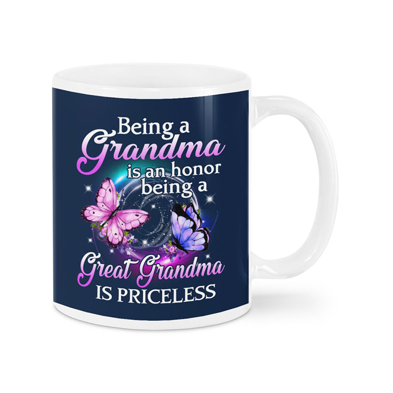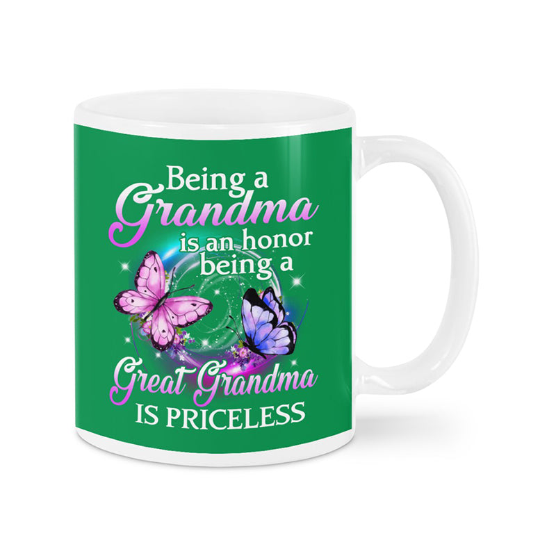 Celebrate the priceless love and wisdom of your great grandma with this charming "Great Grandma Is Priceles Mug", perfect for enjoying her favorite beverage in style!