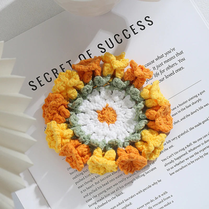 🌸 Colorful Flower Design: The coaster is made of colorful wool woven into a flower pattern, which is brightly colored and adds interest to life.