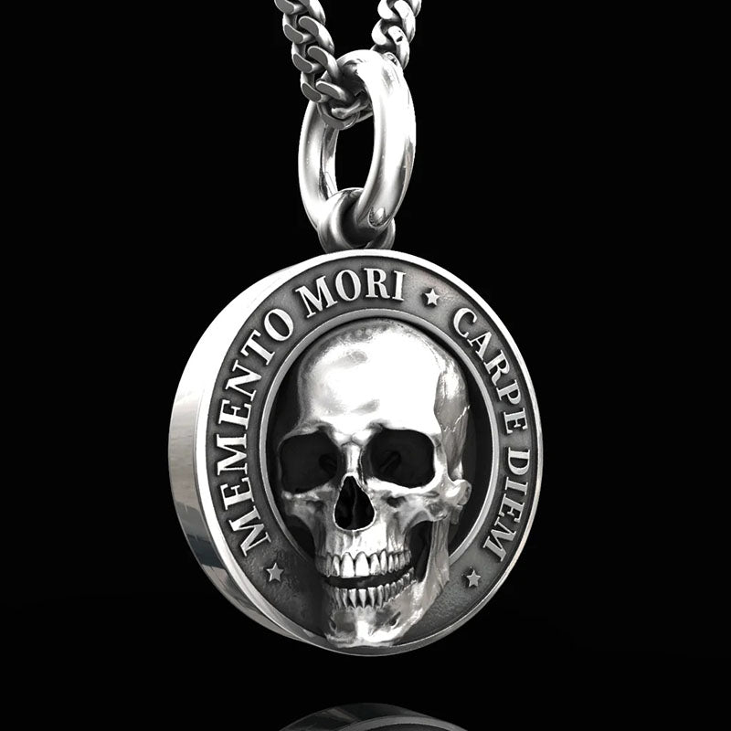 A heavyweight Memento Mori skull pendant. The pendant is highly polished with the skull in a polished matt.