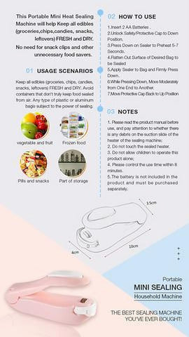 - Seal In Seconds: Just press and pull the mini food sealer across the bag to create an airtight seal. You will lock you food/ snacks in freshness and flavor.