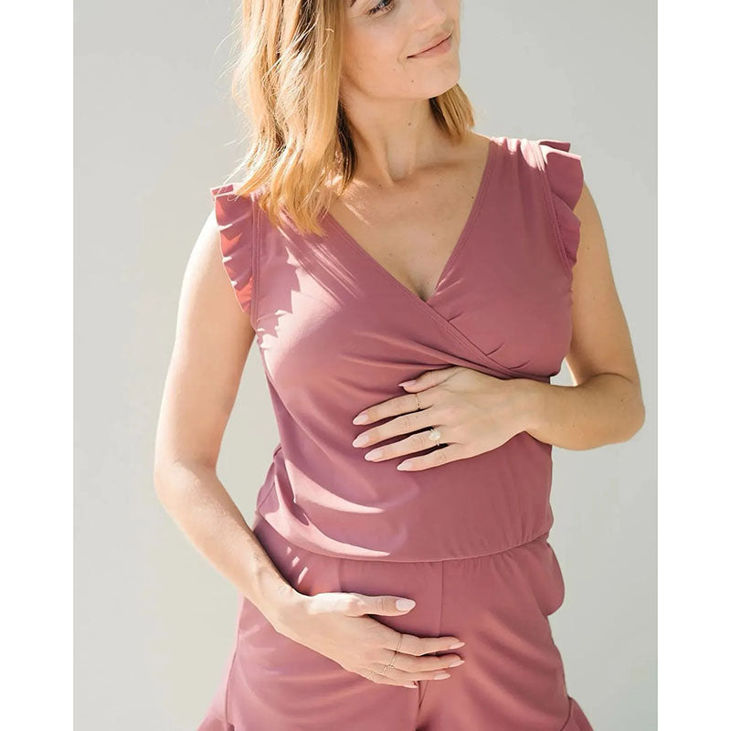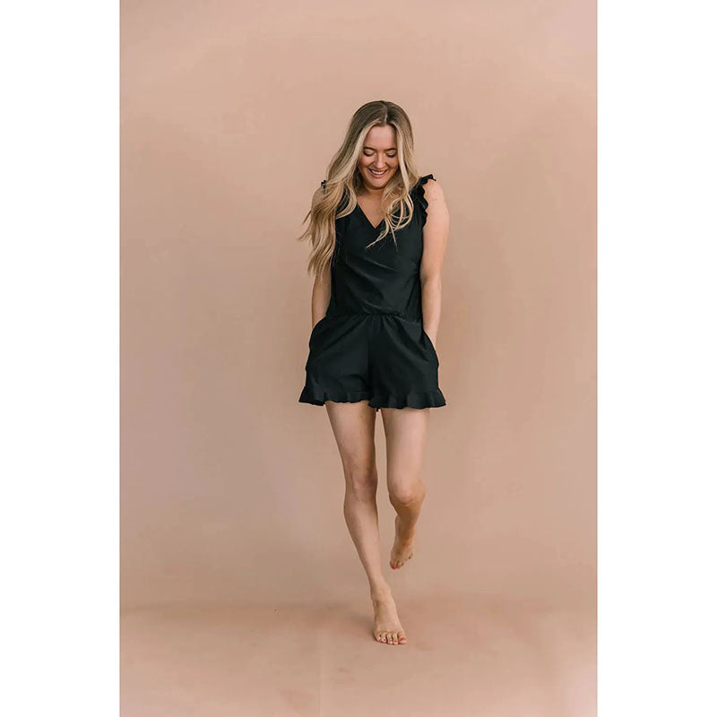 The Swim Romper is features with crossed v-neck, ruffle shoulder and hem design, nursing-friendly for moms and create a flattering look in style, ruffled sleeves and shorts come for a sophisticated take on a tropical-inspired look.