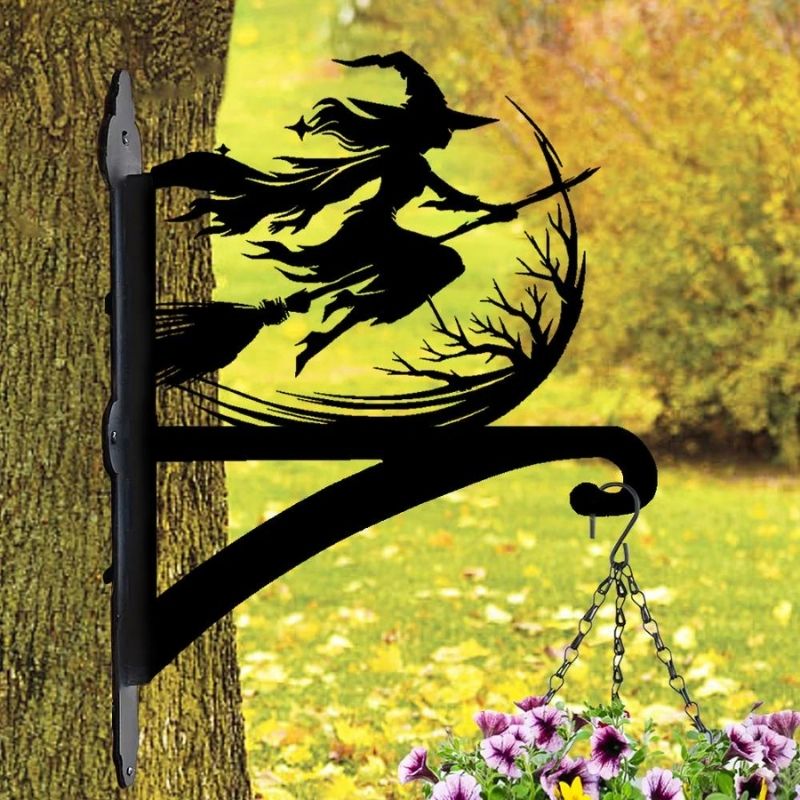 Witch on Broomstick Metal Hanging Bracket Plant Stand PS148
